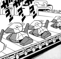 | These Porygon were originally created by Erika's father. However, Giovanni and his twin brother take control of them during Team Rocket's takeover of Silph Co.. The bosses used the Porygon for their evil deeds during the takeover. One of the Porygon was sent out after Hitmonchan's defeat. More of them were revealed as they were cloned on a machine, leaving Clefairy outnumbered. However, the clones were revealed to be from the device that Giovanni's twin brother was using to control them. The clones were rendered useless after Pikachu's electric-type attack destroyed the device that Giovanni's twin brother was holding.
