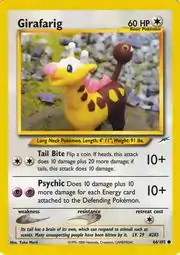 Girafarig (Japanese: キリンリキ Kirinriki) is a Colorless-type Basic Pokémon card. It is part of the Neo Destiny expansion.