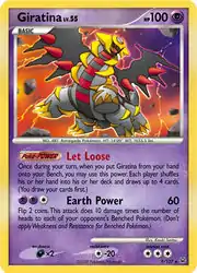 Giratina (Japanese: ギラティナ Giratina) is a Psychic-type Basic Pokémon card. It is part of the Platinum expansion.