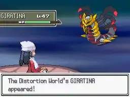 - In Pokémon Platinum, when encountered in the Distortion World the unique message "The Distortion World's Giratina appeared" is displayed. However, it is still a wild Pokémon.