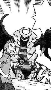 Giratina (Japanese: ギラティナ Giratina) is a major character in Giratina and the Sky Warrior. It made a second appearance, alongside the other members of its trio, in Arceus and the Jewel of Life.