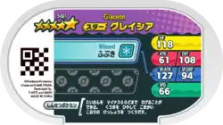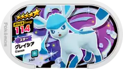 Glaceon (Japanese: グレイシア Glacia) is a Grade 5 Pokémon Mezastar tag. It is part of the third set.