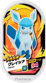 Glaceon (Japanese: グレイシア Glacia) is a Grade 4 Pokémon Mezastar tag. It is part of the third set.