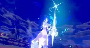 Glacial Lance (Japanese: ブリザードランス Blizzard Lance) is a damage-dealing Ice-type move introduced in Generation VIII. It is the signature move of Ice Rider Calyrex.