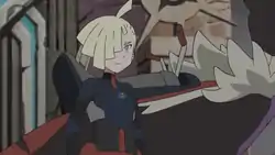 In Faba's Revenge!, Lillie and Ash informed Gladion that Faba had kidnapped Nebby. The three traveled to Aether Paradise, where they informed Lusamine about the situation. They headed to Faba's location, only to find that he successfully forced Nebby to summon a Nihilego from an Ultra Wormhole. The group tried to fight off Nihilego, but it proved to be too powerful and easily defeated their Pokémon. When Gladion tried to protect his family from the Ultra Beast, Lusamine pushed him out of the way and was captured instead. Nihilego then proceeded to drag Lusamine into the Ultra Wormhole.