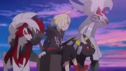 In Filling the Light with Darkness!, Gladion attempted to calm Silvally down after it sensed the presence of another Ultra Beast. Noticing that Silvally appeared to be scared of the presence, Gladion realized that whatever it was, it must be powerful. Later, he traveled to the Altar of the Sunne, where he joined Lillie, Ash, and their classmates as a member of the Ultra Guardians. There, Gladion, Ash, Kiawe, and Lana combined their Z-Power to fuel a device that dispersed the dark clouds covering Alola, uncovering an Ultra Wormhole in the process. Afterward, Lusamine took the Ultra Guardians into the ruins, where she showed them a mural depicting the Blinding One. Before any attempt to translate the mural could be done, the Ultra Guardians were forced to return outside, where they found the wormhole increasing in size. A moment later, a Lunala emerged from the wormhole with a Necrozma chasing after it.