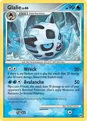 Glalie (Japanese: オニゴーリ Onigohri) is a Water-type Stage 1 Pokémon card. It is part of the Arceus expansion.