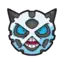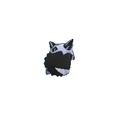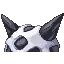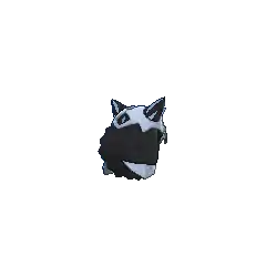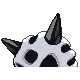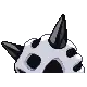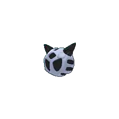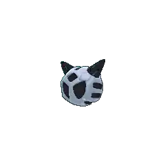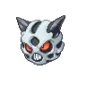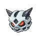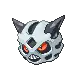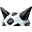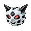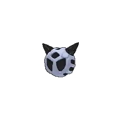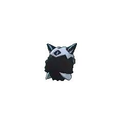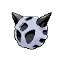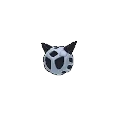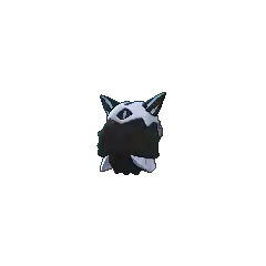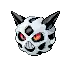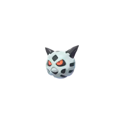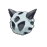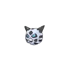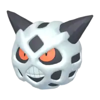 Glalie is a spherical Pokémon that consists of a black rock core covered by ice. The icy covering has several holes and spaces across this Pokémon's body. Blue eyes and a mouth with flat teeth are visible through three of these holes. There are two large, black, conical horns on either side of Glalie's head.