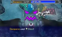 Dunsparce's eyes and eyelids glow red and the opponent becomes paralyzed. | ||