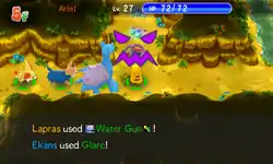 Arbok glares at the opponent and its eyes flash different colors, making the opponent paralyzed, or Arbok's eyes glow blue and the opponent becomes paralyzed. | ||