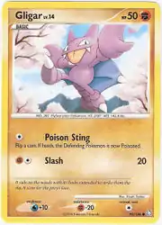 Poison Sting and Slash are both moves in the Pokémon games that Gligar can learn. This card's Pokédex entry comes from Pokémon Diamond and Pearl.