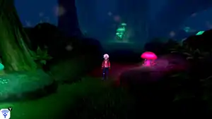 Glimwood Tangle (Japanese: ルミナスメイズの森 Luminous Maze Forest) is a forest in the northwestern part of the Galar region. It lies between Stow-on-Side (to the south) and Ballonlea (to the north).