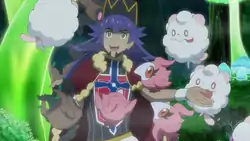 Chloe, meanwhile, encountered a Galarian Ponyta, who led her to an injured Galarian Rapidash. Chloe went off in search of a flower whose dew could heal Rapidash, only to run into a trio of Impidimp that stole her backback. After a playful fight with Bluk Berries, Chloe retrieved her backback and got the flower dew she had searched for, using it to heal Rapidash. As thanks for healing it, Rapidash let Chloe ride itself and took her to Ballonlea.