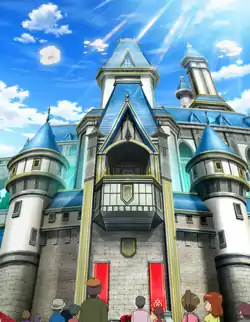 Gloire City (Japanese: グロリオシティ Glorio City) is an anime-exclusive location in Kalos. It is a seaside city with a large castle sitting on a hill. Like many other cities in the region, it has a theater where Pokémon Showcases are held.