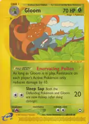 Gloom (Japanese: クサイハナ Kusaihana) is a Grass-type Stage 1 Pokémon card. It is part of the Aquapolis expansion.