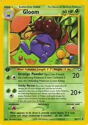 Gloom (Japanese: クサイハナ Kusaihana) is a Grass-type Stage 1 Pokémon card. It is part of the Neo Genesis expansion.