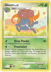 Sleep Powder and Frustration are both moves in the Pokémon games that Gloom can learn, the latter only via TM21. This card's Pokédex entry comes from Pokémon Diamond and Pearl.