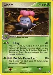 Gloom (Japanese: クサイハナ Kusaihana) is a Grass-type Stage 1 Pokémon card. It is part of the EX Hidden Legends expansion.