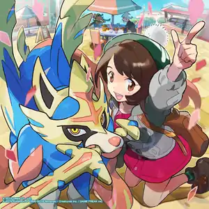 Gloria's design is based on her appearance in Pokémon Sword and Shield. Zacian is the game mascot of Pokémon Sword, and is required to catch to progress through the game's post-game scenario. Crowned Sword Zacian's Dex entry comes from Pokémon Shield.