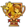 Gloria (Japanese: ユウリ Yuuri) is a Pokémon Trainer in Pokémon Masters EX, based on the character of the same name in the core series games. She forms a sync pair with Zacian. The sync pair can be obtained through a limited sync pair scout, and was first available on November 30, 2020. The pair's potential can be upgraded to 6★ EX, which unlocks Gloria's EX Style.