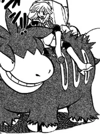 Tyranitar was used by Billy to knock Lunick flying. Then, it was used to smash Lunick's Capture Disc into pieces.