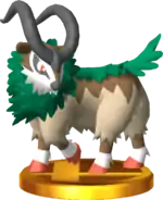Gogoat appears as a Poké Ball summon. When summoned, it charges around the stage with Take Down, and can be mounted by anyone.