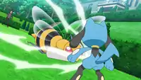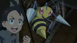 In Raid Battle in The Ruins!, Goh used Beedrill to cross the Desert Resort. As they traversed, it got into a race with Ash's Dragonite. Later, it was used in a Raid Battle against a Golurk, but it was easily defeated.