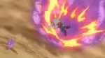Description: A combination of Pyro Ball and Aura Sphere. Cinderace kicks a Pyro Ball while Lucario launches an Aura Sphere and the two attacks converge into a fireball surrounded by light blue streaks of energy.