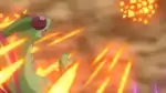 Description: Raboot leaps high into the air using the stones created by Flygon's Draco Meteor as a foothold. It then kicks one of the stones, shattering and igniting it. The flaming shards then rain down on the opponent.