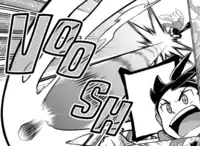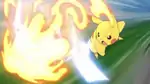 Description: A combination of Ember and Iron Tail. Raboot fires an Ember at Pikachu, who sends it at the opponent with Iron Tail, thus increasing the Ember's speed and surrounding it with white sparks of energy. This was used to defeat Team Rocket's Crobat and Skarmory and send them and Team Rocket blasting off.