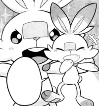 Scorbunny appears in Daisuki ♥ Pocket Monsters. It, along with Ash's Pikachu and Professor Cerise's Yamper, try to escape the hugs of Mika, who aims to catch all of the cutest Pokémon in the world.