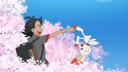 In Mind-Boggling Dynamax!, Scorbunny tried to catch Goh's attention aboard the train, but failed. When Goh and Ash left the train at their stop, Scorbunny accidentally stayed on board before realizing what had happened, and was forced to jump from the moving train later on and try to catch up to Goh by foot. After many hardships, it finally reached Goh and Ash and managed to catch their attention while they were examining a Snorlax. Scorbunny expressed its willingness to become Goh's Pokémon, but Goh said that he had already decided to make Mew his first Pokémon. Suddenly, the Snorlax they had been examining Gigantamaxed and blocked a nearby train track in the process. With Scorbunny's help, Goh and Ash were able to make Snorlax move and prevent an incoming train from hitting it. Impressed by Scorbunny's abilities, Goh decided to make it his first Pokémon instead of Mew. Although Goh's Poké Ball throw missed, Scorbunny hit it on its own and was successfully caught. When Goh and Ash returned to the Cerise Laboratory, Professor Cerise was surprised to see Goh having caught a Pokémon.