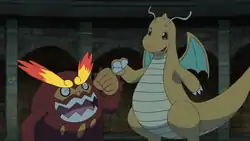 | Description: A combination of Hurricane and Overheat. Darmanitan uses Overheat while Dragonite creates a Hurricane; the two attacks then combine to create a swirling stream of red-orange fire surrounded by green blades of energy. This was used to incapacitate a wild giant Golurk in the Colossus Ruins. | |||