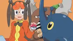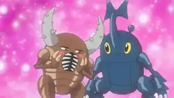 In JN094, the arrival of a Lilligant with a sweet smell makes Heracross pay more attention to her than to Pinsir, which makes Pinsir jealous of this relationship. During an attack by Team Rocket on the Celadon Gym, Goh uses Heracross against a Lurantis but is defeated. At the moment when the Pokémon used by Team Rocket are going to launch the final attack, Pinsir places herself in front of Heracross, protecting him, making the two Pokémon end up reconciling.
