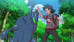 In Getting More Than You Battled For!, during a search for Mew, Goh used Heracross to save Ash from sinking in a swamp. Due to his enormous strength, he ended up throwing Ash into the air, catching him shortly after.