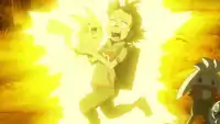 Soon after, Pikachu discovered a Thunder Stone. She teased Ash's Pikachu by chasing him around with it before giving the stone to Goh. Right after, Team Rocket showed up and began stealing the Pikachu and Raichu, including Ash's. Goh's Pikachu volunteered to save them, and in the process touched the Thunder Stone and evolved into Raichu. With her new strength, she freed her friends and joined them in blasting Team Rocket off.