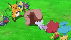 When Team Rocket captured the other wild Pikachu, she volunteered to evolve herself so that she could save them. Later, Raichu's knowledge of Berries proved useful when Goh’s newly captured Suicune had been badly injured after an encounter with a gang of Pokémon Hunters.