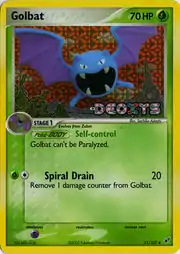Golbat (Japanese: ゴルバット Golbat) is a Grass-type Stage 1 Pokémon card. It is part of the EX Deoxys expansion.