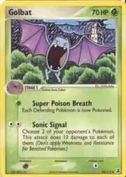 Golbat (Japanese: ゴルバット Golbat) is a Grass-type Stage 1 Pokémon card. It is part of the EX Delta Species expansion.
