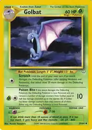 Golbat (Japanese: ゴルバット Golbat) is a Grass-type Stage 1 Pokémon card. It is part of the Neo Revelation expansion.