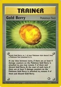 The Gold Berry was introduced as a Pokémon Tool Trainer card in the Pokémon Trading Card Game during the English Neo Series (the Japanese Neo Era) in the Neo Genesis expansion. It has never been reprinted.
