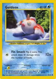 Goldeen (Japanese: トサキント Tosakinto) is a Water-type Basic Pokémon card. It is part of the Neo Revelation expansion.