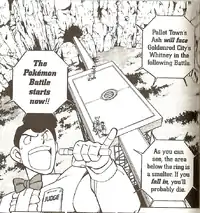 Ash challenged Whitney for the Plain Badge at Goldenrod Gym in The Beginning Of Good Luck?! Pokémon Fortune Telling. When Ash begun his battle with Whitney, the referee told him that the area below the arena was a smelter hot enough to cause death to anyone who fell there. Later, when Ash and Psyduck actually did fall down, Whitney revealed that there wasn't really a smelter. Instead, it was an illusion created by a 3D hologram and the only thing below was water.