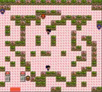 In Pokémon Gold, Silver, and Crystal, the Goldenrod Gym is a maze of flowers and ornaments in the shape of a Clefairy, a then Normal-type Pokémon. The player must navigate their way around the pink-floored Gym by going around the wall of pretty flowers first then entering the middle section. The Trainers in the Gym are hard to avoid and most of them must be battled in order to reach Whitney. Whitney will be located in the middle of the Gym where she can be challenged to earn the Plain Badge.