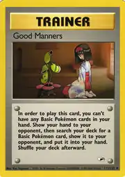 Good Manners (Japanese: 礼儀作法 Etiquette) is a Trainer card. It was first released as part of the Gym Heroes expansion.