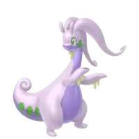 Because of its meek, friendly nature, Goodra is often teased for supposed weakness. Goodra is known to be very friendly. When it grows close to someone, it will hug them and leave them coated in slime. If it is left alone, it will ooze gooey tears. Goodra usually misunderstands instructions, appearing dazed or bewildered. Despite this, many Trainers don't mind it, instead finding this behavior to be adorable. However, it will strike at its tormentors with its retractable horns and powerful tail. The horns can hit 100 times harder than the blow of a heavyweight boxer. It is also capable of throwing punches with incredible force. Its slimy coating in combination with a layer of fat causes attacks to slide off.