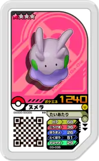 Goomy (Japanese: ヌメラ Numera) is a Grade 1 Pokémon Ga-Olé disk. It is part of the third Dash set.