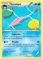 Gorebyss (Japanese: サクラビス Sakurabyss) is a Water-type Stage 1 Pokémon card. It is part of the Primal Clash expansion.