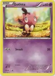 Gothita (Japanese: ゴチム Gothimu) is a Psychic-type Basic Pokémon card. It is part of the Emerging Powers expansion.