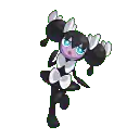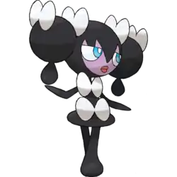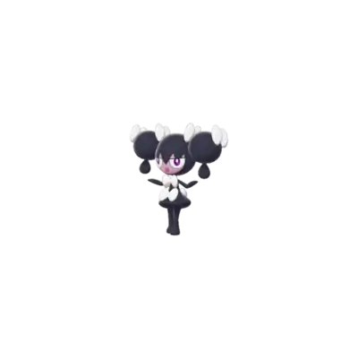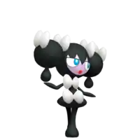 Gothorita is a black, humanoid Pokémon with slim arms and legs. There are two round black buns on each side of its head, with a smaller drop-shaped piece hanging from each. Adorning its hair are four white bows, two on each bun. It has a pale purple face with cyan eyes and red lips. It has two white bows on its body, which flares at the bottom to form a skirt shape. Gothorita uses starlight as the source of its power, and is able to use its psychic powers to arrange rocks to match the star. It can also use these powers to control people and Pokémon with hypnosis.